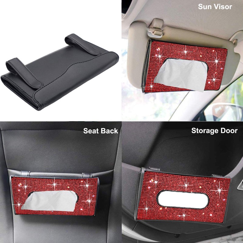 - Good Quality: This bling tissue holder is made of shining rhinestones, not easily fall out, eco-friendly pu leather. Bling car interior decoration, shining especially under light, makes your car more luxurious and elegant.