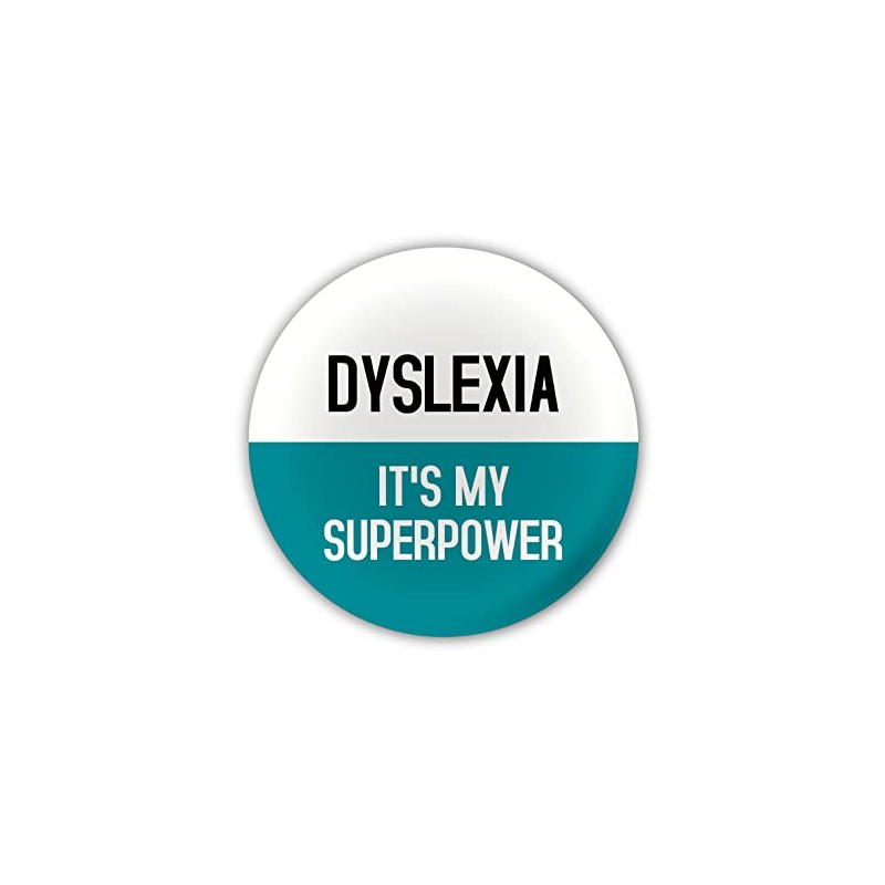 "Dyslexia. It's My Superpower" Large Pin Button Badge. Disability Awareness