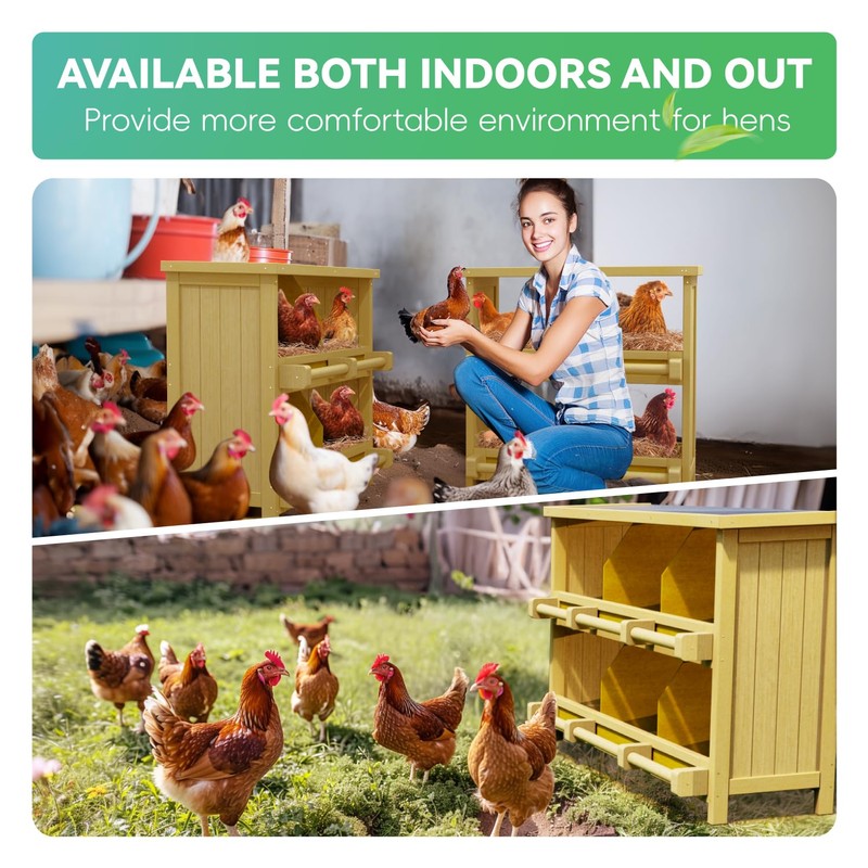 - Made from high-quality wood, this nesting box offers a natural, durable structure. Unlike metal, wood creates a more comfortable and familiar environment for hens, reducing stress and leading to higher egg production. hens seem much more relaxed in the wooden nesting box, resulting in more consistent egg laying