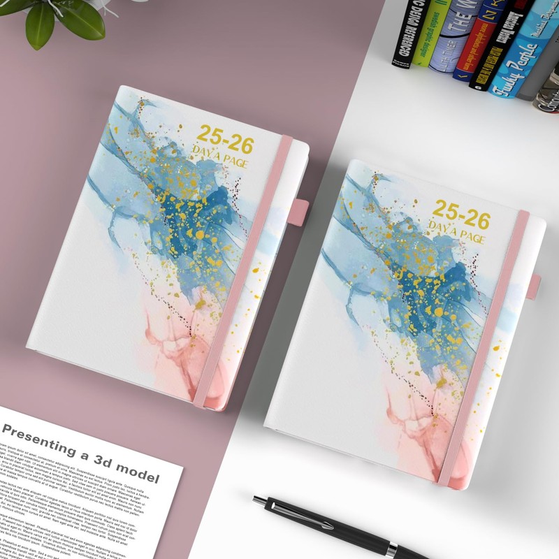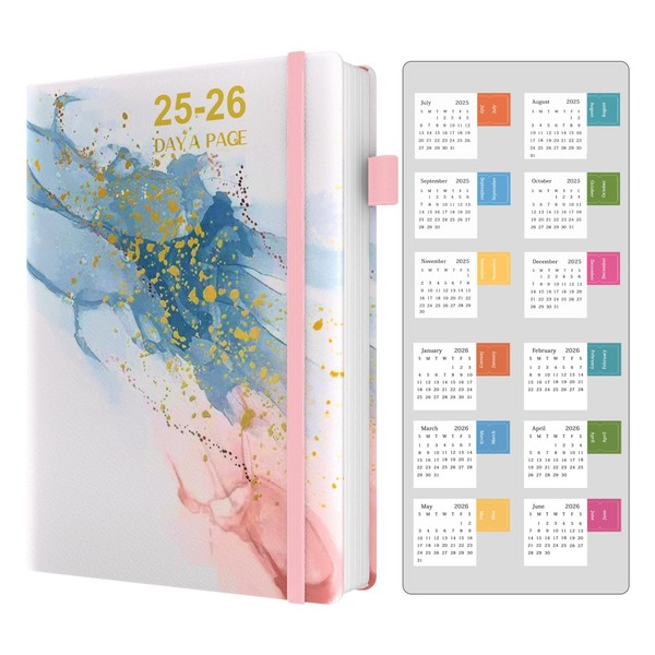 Dzhzal 2025-2026 Academic Diaries A5 Page a Day Hourly Diary with Calendar Stickers, Mid Year Diary 2025-2026, Pen Loop, Bookmarks, Banded Hard Cover and Inner Pocket, 5.8''x8.3''