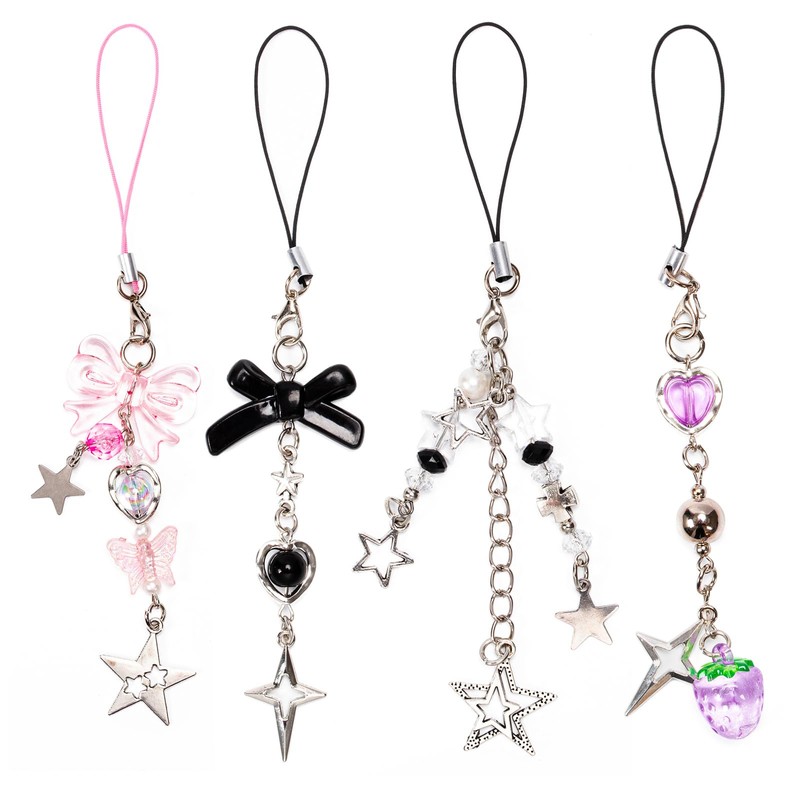 Dzpuhuojz 4PCS Phone Charm,Cute Phone Charms,Pink Butterfly Star Phone Charm Strap Y2K Accessories for Phone Keychain Airpods Bag Pendants Decor (balck)