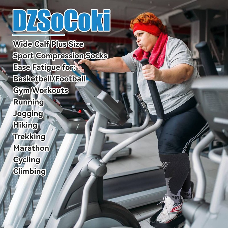 DZSoCoki compression socks for women men.We have 5size(M,XL,2XL,3XL,4XL) for your choice.No matter with regular size calf or large wide calf size,both meet your needs.Say goodbye to leg calf feet pain.