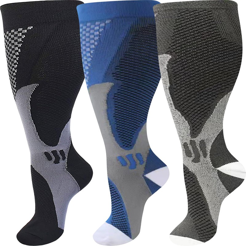 DZSoCoki Wide Calf Compression Socks Women Men, 3Pair Extra Large Plus Size Compression Socks Support for Circulation Nurse Pregnant