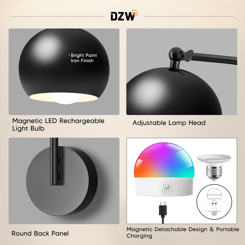 - 【Bright Black Metal Finish】The wireless wall light feature a luxurious bright black paint finish on their surfaces, adding a touch of elegance and sophistication to any room decor. The unique globe lampshade design reflects brighter light, while the white interior ensures that light is not absorbed.