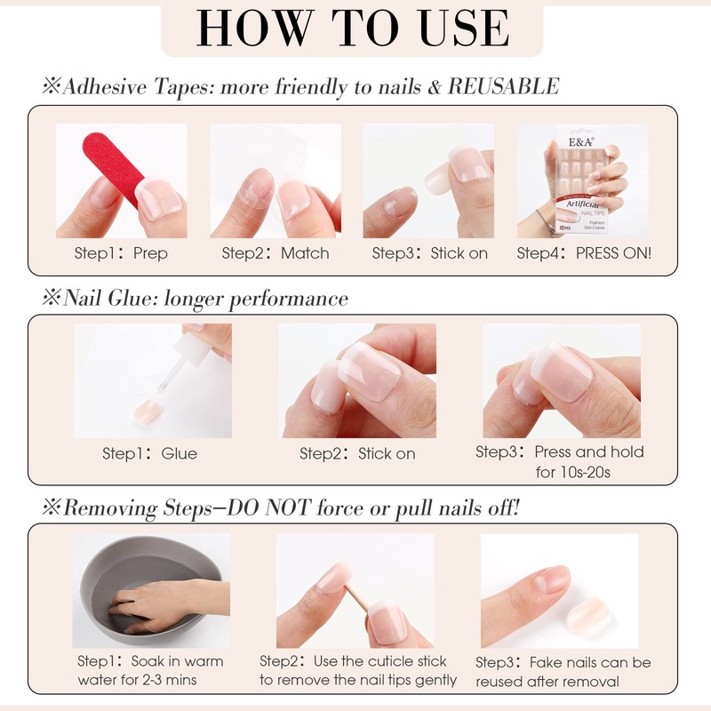 - 【Safe Material】: E&A press on false nail tips are made with high quality environmental friendly material, which is not toxic to your body or your nails.