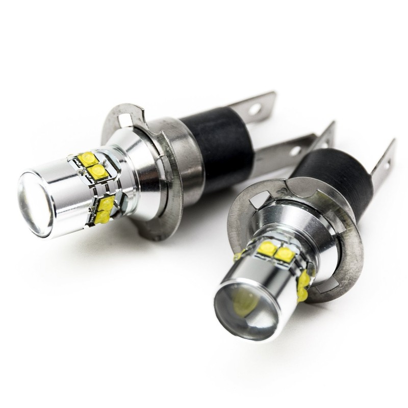 e-auto fun Short Type H3C LED Bulb, 50W, 12V/24V, White, Non-Polarized, Set of 2, Equipped with CREE XB-D Chip (Perfect for Fog Lamps)