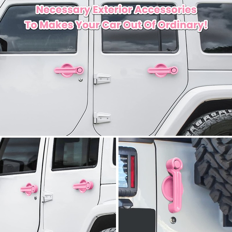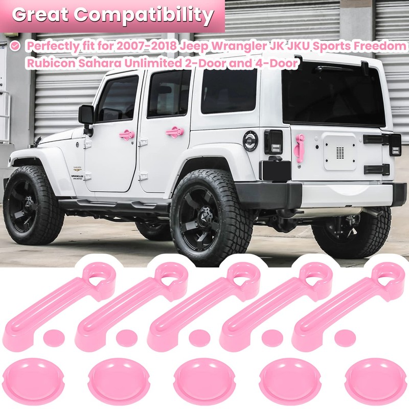 E-cowlboy Door Handle Cover Inserts+Tailgate Handle Cover+Recess Guard for 2007-2018 Jeep Wrangler JK JKU Sports Sahara Freedom Rubicon Unlimited Exterior Accessories (Pink 15PCS)