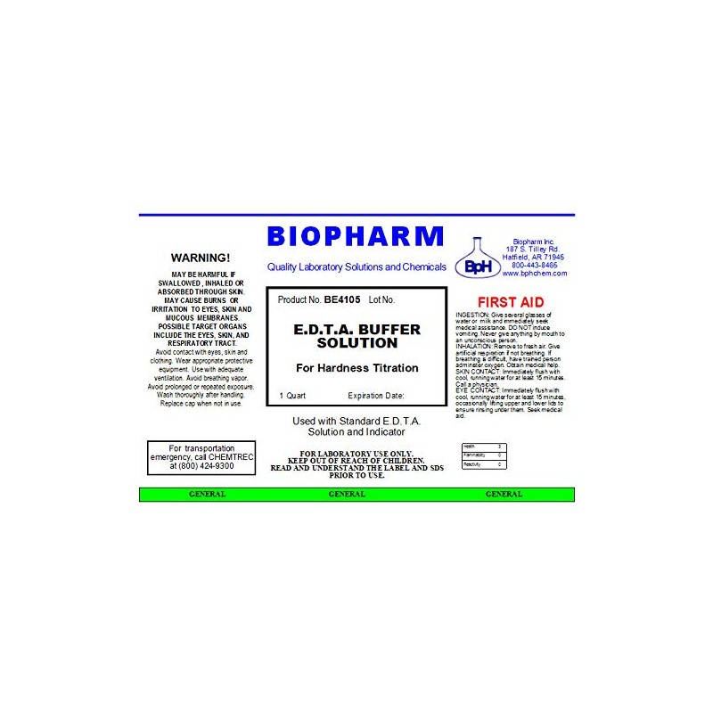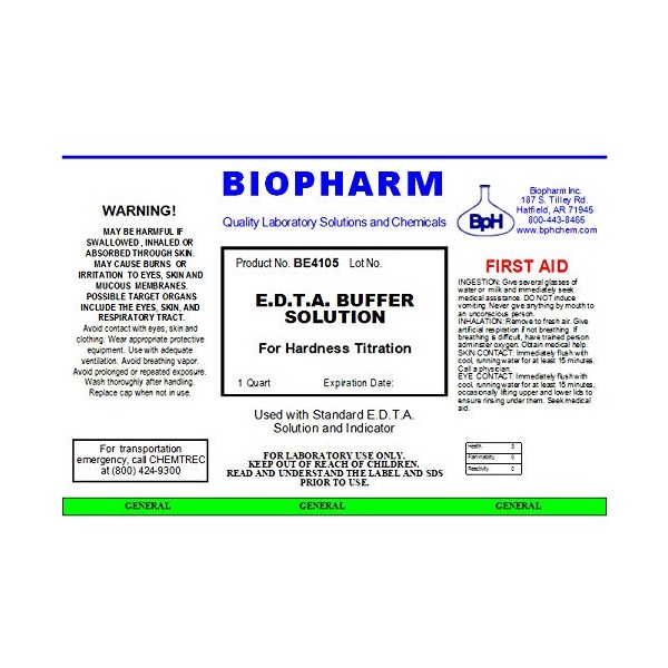 E.D.T.A. Buffer Solution for Hardness Titration — 1 Quart (950 mL) Bottle | E...