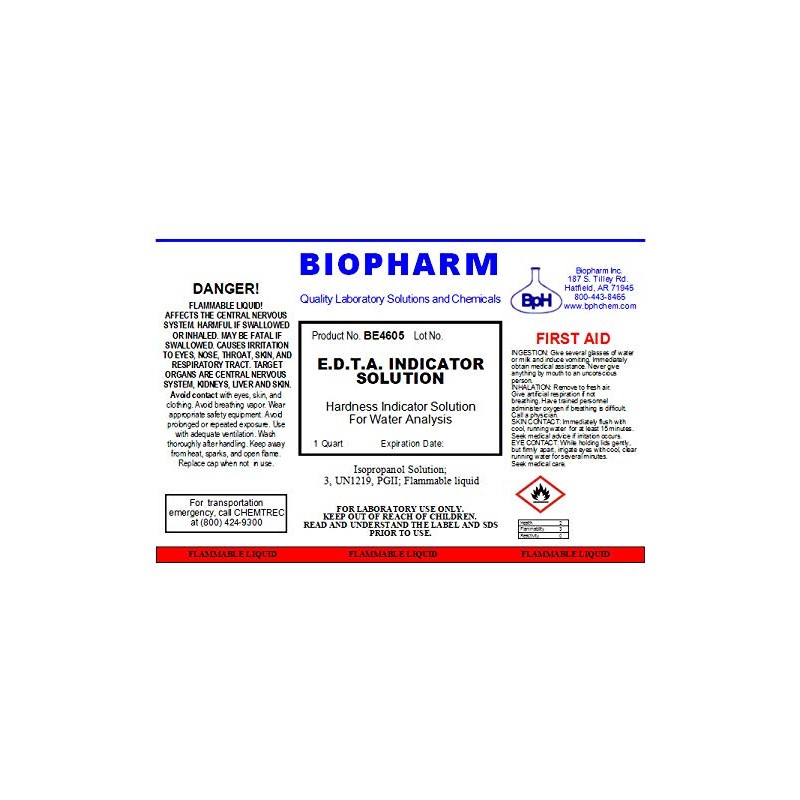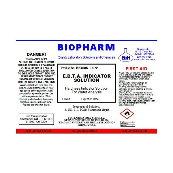 E.D.T.A. Indicator Solution for Hardness Titration: Eriochrome Black T with Triethanolamine | 1 Quart (950 mL)