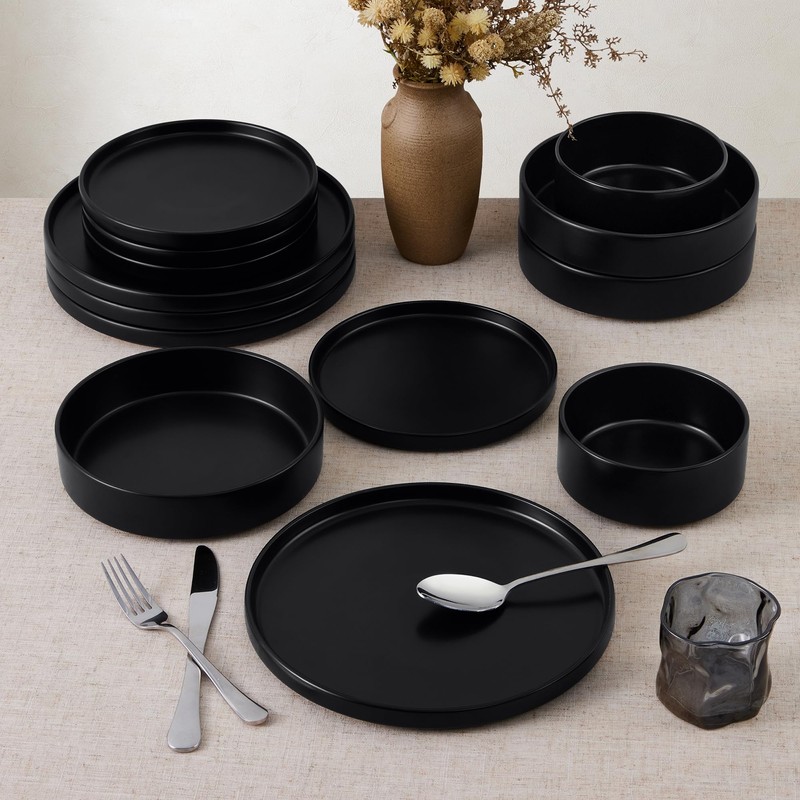 • BLACK DINNERWARE SETS FOR 6: Includes 6 each of 10.5" dinner plates, 7.9" dessert plates, 5.7"(25oz) cereal bowls, Each dish exudes quality and style, Make it perfect for daily meals, formal dinners, and entertaining guests, Great as gift for housewarmings, weddings, or any special occasion