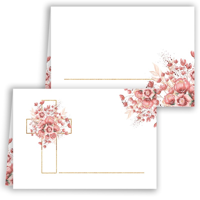 E&G Klasse Place Cards, Name Cards, Pack of 25, Blank Place Cards, Communion Confirmation, Christening, Wedding, Birthday, Celebration, Anniversary, Vintage, White, Pink, Roses, Cross, Flowers with