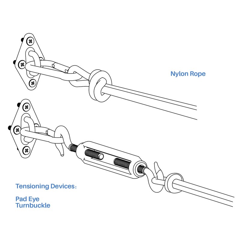 If water is allowed to pool in the center of the sail, it will slowly drip through, Some water may also leak through the stitching on the seams, but if the sail is installed at a 30-45 degree angle with enough tension, most rain water will run off, Please refer to the installation illustration.