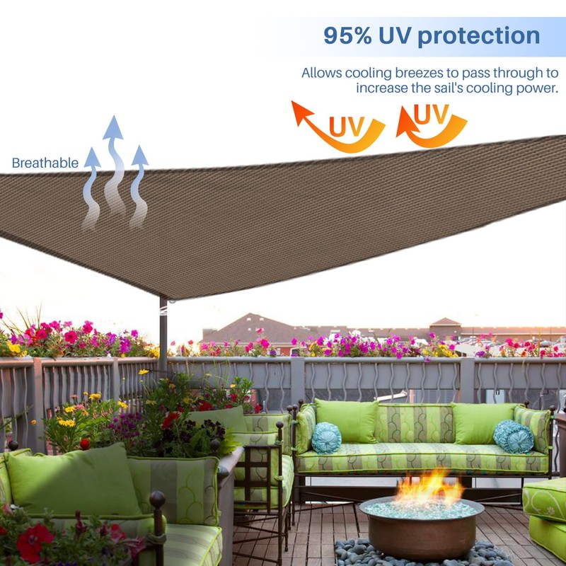 • UV RESISTANT&BREATHABLE - This sun shade sail will help block strong sunlight and allow cool breezes to pass through while protecting you from the sun, providing significant temperature reduction and a comfortable space for you.