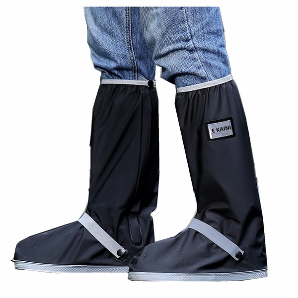 E KAINI Waterproof Rain Boot Shoe Covers with Reflector,Anti-Snow Rain Gear Reusable Galoshes for Men and Women,Foldable Rain Boot with Zipper, Non-Slip