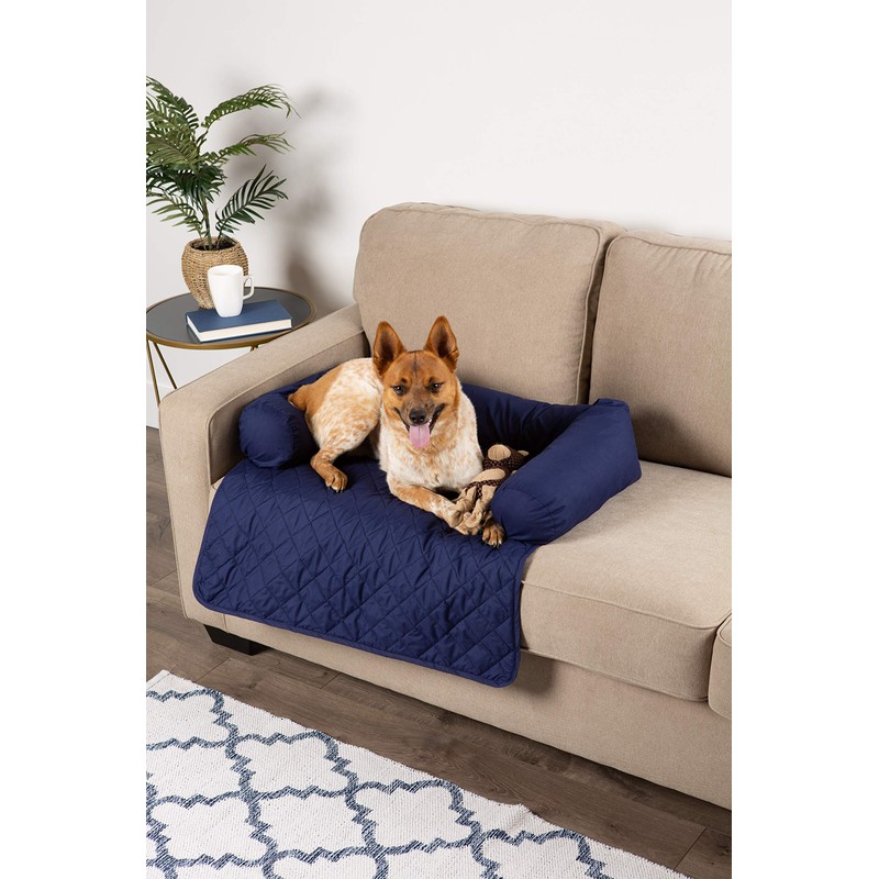 E-Living Store Pet Furniture Protector Non-Slip Water-Resistant Cover for Dogs and Cats with 3-Sided Bolster Soft Fabric - Medium, Navy