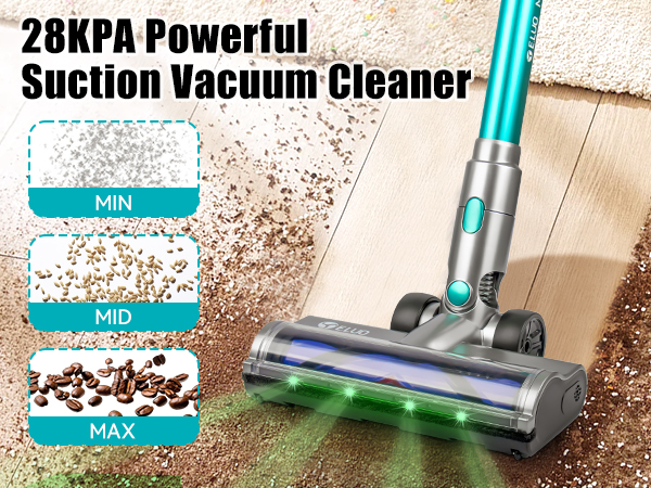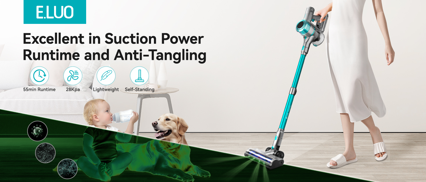 E.LUO Cordless Vacuum Cleaner 60min Runtime Dust Sensor Handheld PowerfulSuctio