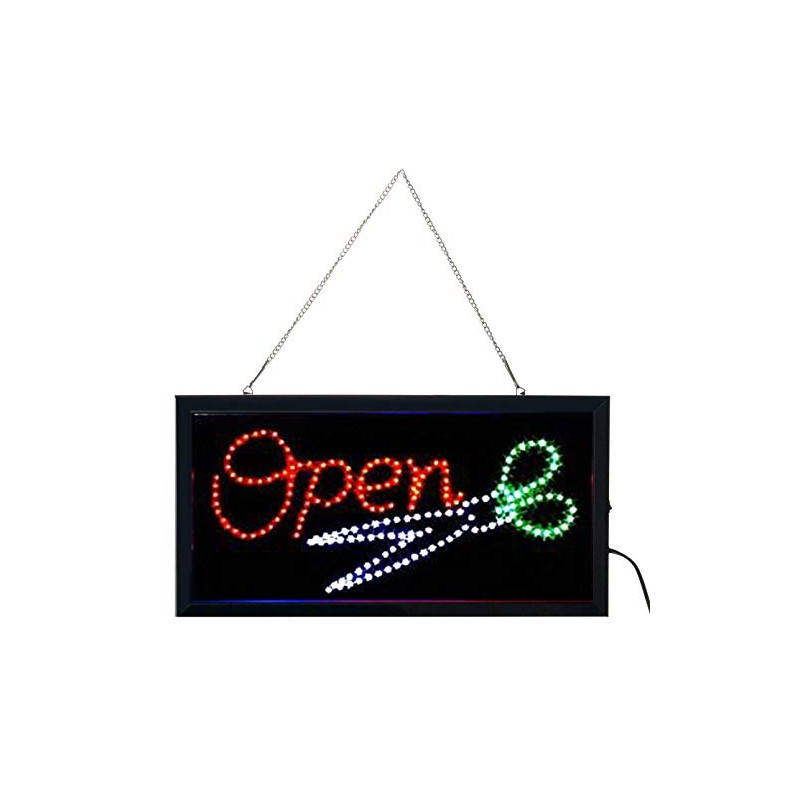 E-ONSALE Ultra Bright LED Neon Animated Hair Cut Salon Open Sign for Business w/Power & Animation On/Off (Open/Scissors)