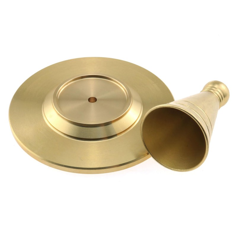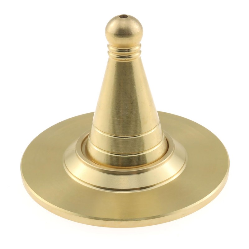 - Turn the brass over, fill the cone with incense powder, cover with the bottom brass, and turn right side up. Slowly lift the brass cone up and the powder will not spread out as the brass holder at the bottom has few holes to hold the powder in and it will not fall out.