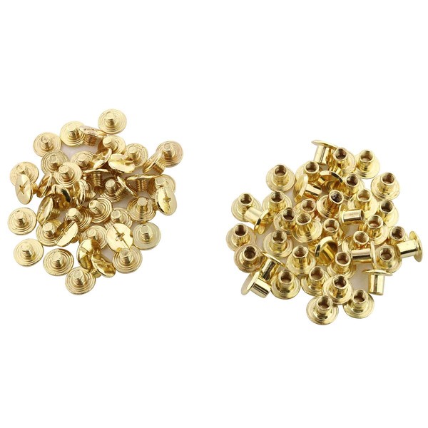E-outstanding Phillip Chicago Screw 120sets 5x6mm Gold Chicago Screw Cross Head Phillips Drive Binding Screws Rivet Assembly Bolt for Book Binding DIY Leather Craft