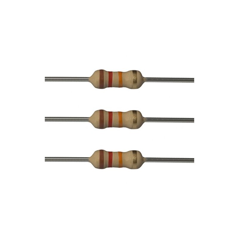 10 each 12k ohm resistors. 1/4 watt. 5% tolerance. Flame retardant coating. Lead free & RoHS Compliant. Cut tape packaging.