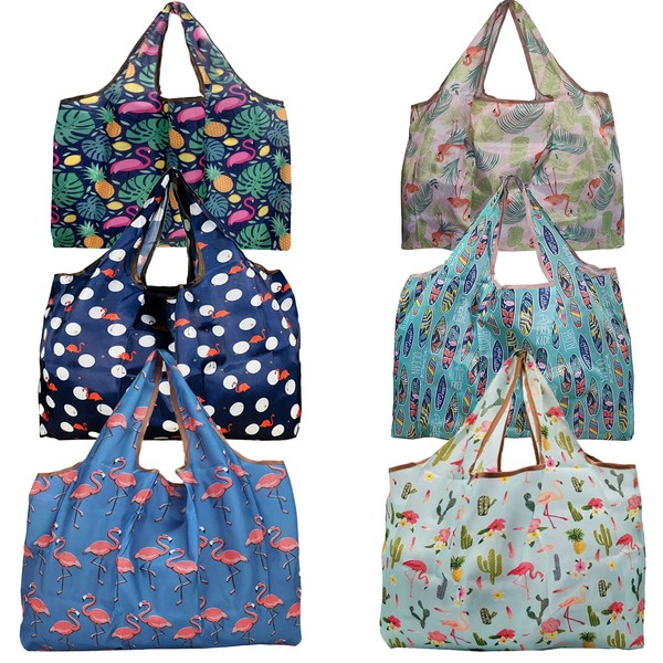 e-smart home Ahyuan Reusable Grocery Bags 6 Packs Super Large Foldable Grocery Tote Bags Ripstop Polyester Reusable Shopping Bags with Attached Pouch Reusable Bags (Green)