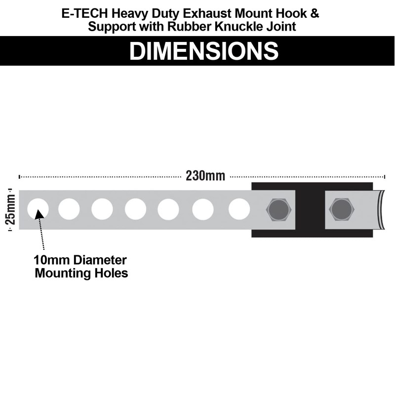 • 1 x E-TECH Heavy Duty Exhaust Mount Hook & Support with Rubber Knuckle Joint supplied