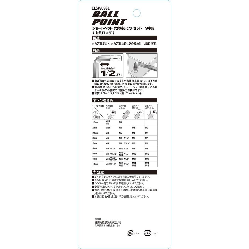 E-Value ELSW09SL Short Head Hex Key Set, Semi-Long, 9-Piece Set
