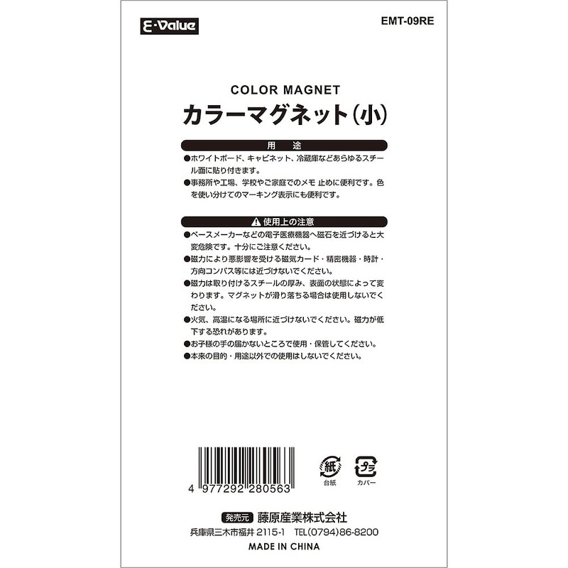 E-Value EMT-09RE Color Magnets, Small, 0.8 inches (20 mm), 9 Pieces, Red