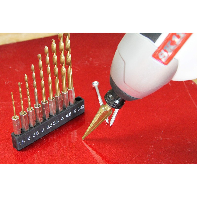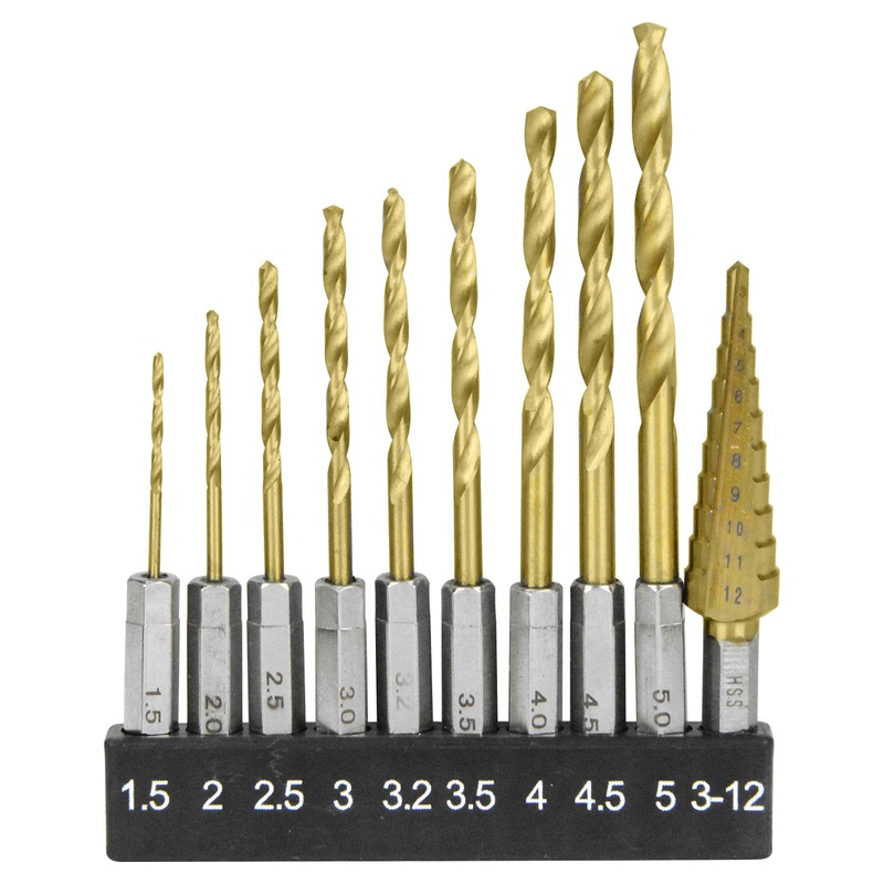E-Value ETD-10STEP Hexagonal Shaft Iron Drill & Step Drill Set, Titanium Coat...