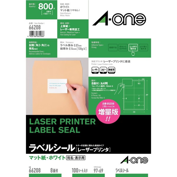 e-wan (A – One) Label Seal [Laser Printer] Matte Paper White A4 8 Surface Four Sides margin with