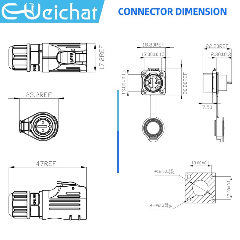 - Pairing type: male plug + female socket; connection mode: one-touch button plug/unplug; method of locking: automatic insertion, self-locking device; protection class: IP68(2m/2h)(paired); mounting type: soldering/welding