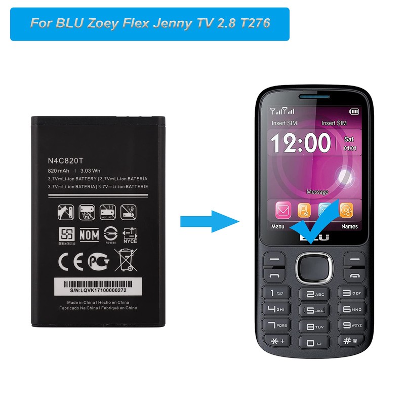 - This battery is compatible with BLU Zoey Flex Jenny TV 2.8 T276, Universal Extra Battery, please carefully check your phone model before purchase.