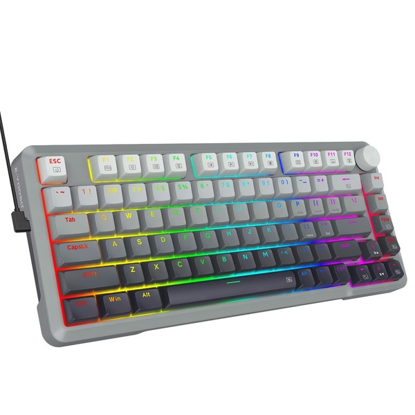 E-Yooso Rapid Trigger Gaming Keyboard, Hall Effect Magnetic Switch, Adjustable Actuation, 8k Hz Polling Rate, Volume Knob, RGB Backlit, PBT Keycaps, 75% Compact Wired for PC Gamer, Gray/Black