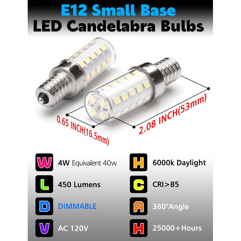 • Dimmable and Good heat dissipation: These E12 small base candelabra light bulbs supports dimming function. It is compatible with most dimmers on the market, allowing you to easily adjust the light brightness according to different lighting needs and ambient atmosphere, achieving seamless switching from bright to soft light, providing more flexibility for your living and working space and personalized lighting experiences. Built-in heat sinks and efficient heat dissipation materials ensure that the bulb can stay cool even under long-term use, preventing the risk of fire caused by overheating