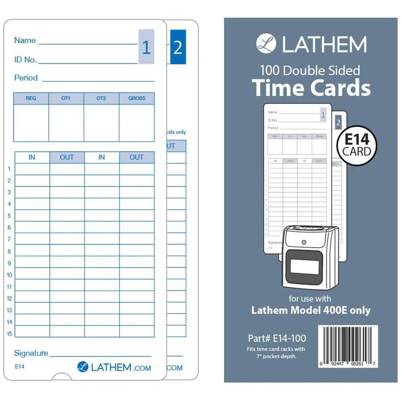 E14-100 Time Cards, Bi-Weekly/Monthly/Semi-Monthly/Weekly, Two Sides, 7"