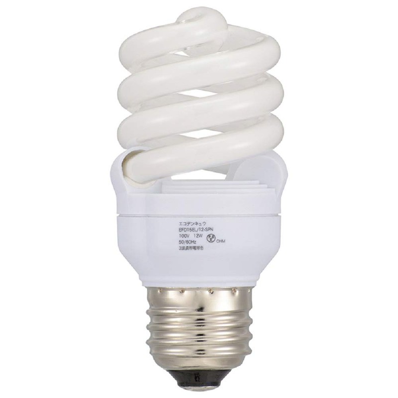 オーム電機 電球形蛍光灯 エコデンキュウ スパイラル形 E26 60形相当 電球色 2個入 [品番]06-0243 EFD15EL/12-SPN-2P
