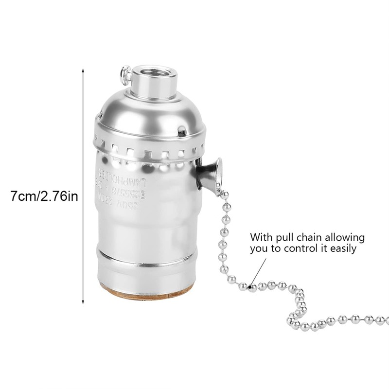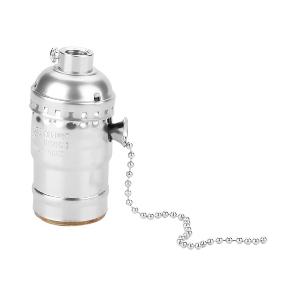 E27 Aluminum Vintage Light Socket, Antique Pull Chain Desk Table Lamp Lighting Holder Replacement Lighting Edison Bulbs Screw Base(Silver)