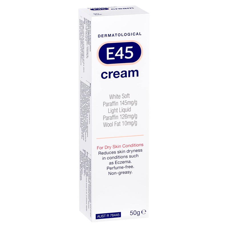 - MOISTURISING MEDICAL GRADE INGREDIENTS E45 Cream is a triple active moisturiser formulated with medical grade ingredients to bring relief to a wide range of dry skin conditions.