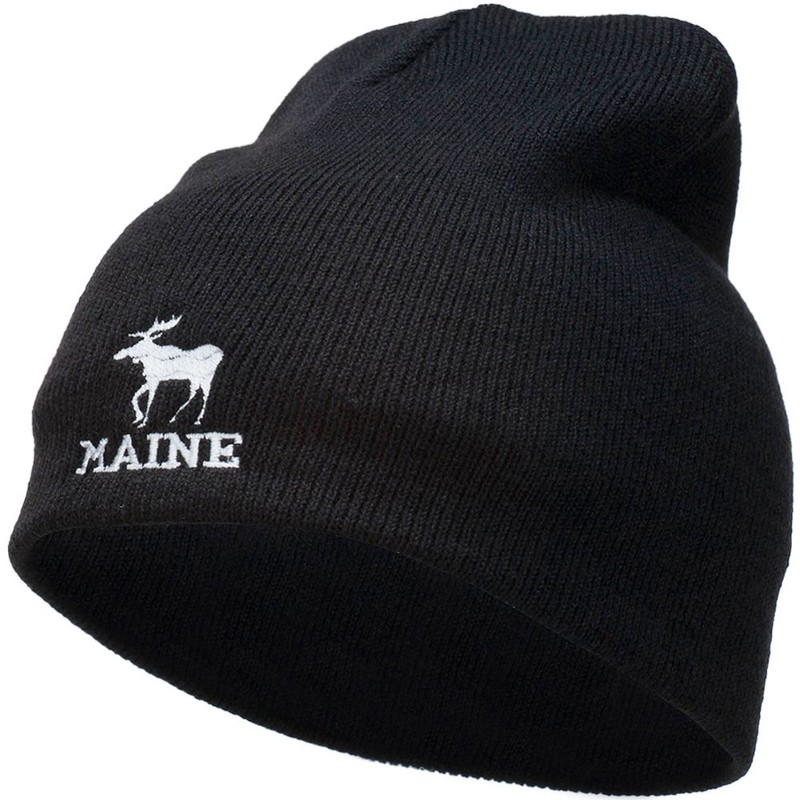 e4Hats.com Maine State Moose Embroidered Short Beanie - Black OSFM