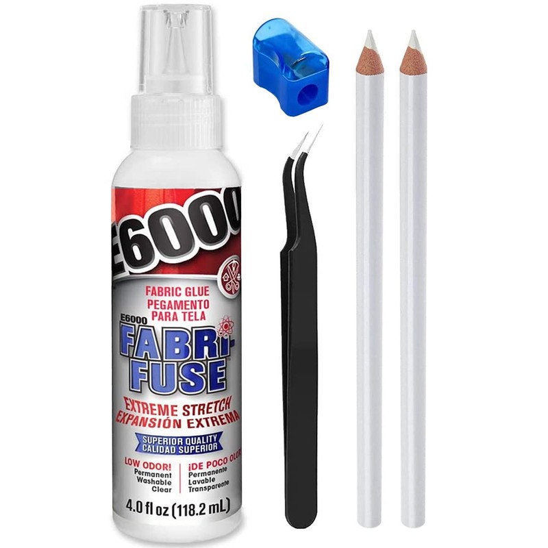 E6000 Glue Fabri-Fuse Fabric Glue Adhesive - 4 fl oz Shelf Bottle - with Pixiss Accessories Needle Tip Tweezers, and 2 Jewel Picker Pencils