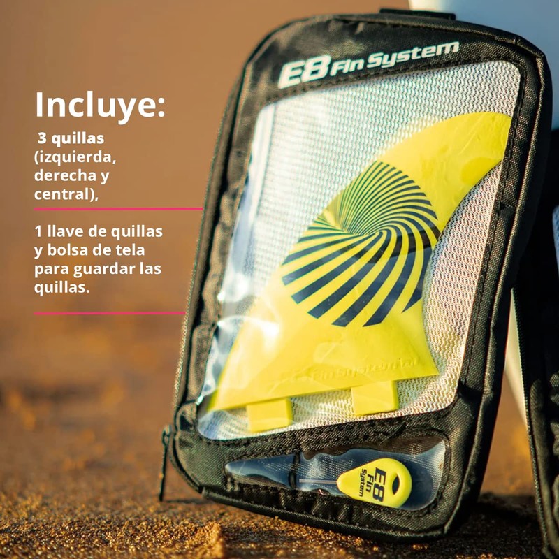 • Compatible with FCS: these surfboards are removable so you can easily remove them to adapt to the conditions of the sea or when you need to travel or store your surfboard. These E8 FIN SYSTEM surfboards have two tabs, making them compatible with all FCS mounting systems.