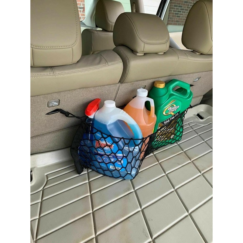 - Keeping Your Car Organized: The car cargo organizer comes with 3 locks for fixing the mesh on top so that objects from the mesh cannot fall out. It stops your groceries, sports equipment, or other accessories from moving in the trunk.