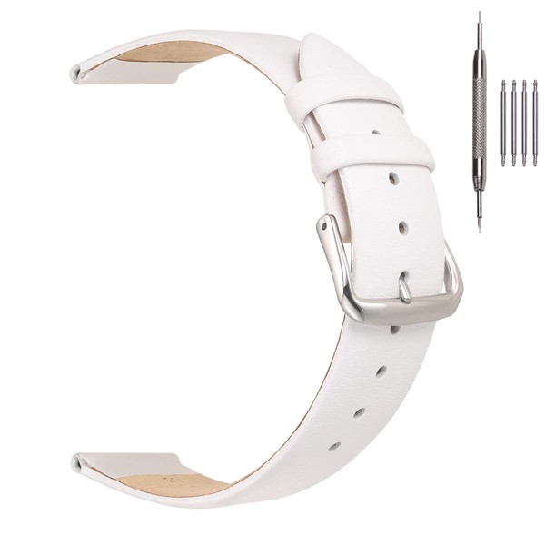 EACHE White Leather Watch Band Classical Thin Leather Watch Replacement Straps for Women 18mm