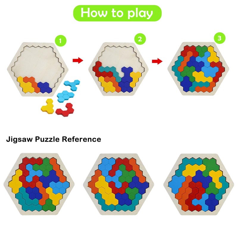 - 【Challenge and Fun】: The intellectual hexagon puzzle is not limited to instructions, but tries to find more solutions to create fantastic artwork. Place the parts in the base plate. Great fun for families and schools that keeps children busy for hours.