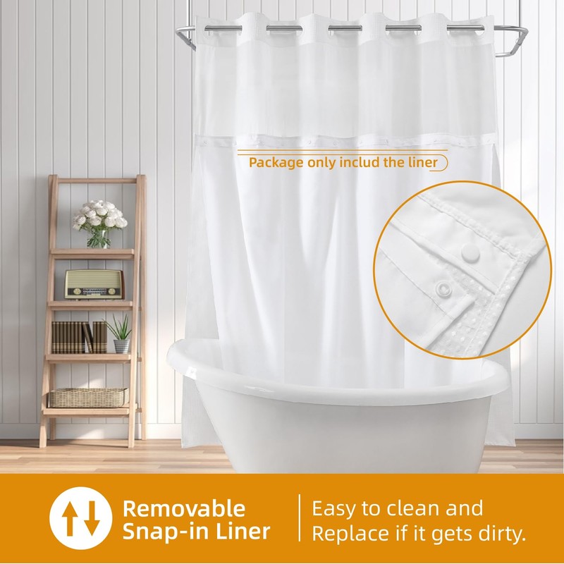 • Removable & Replacement Liner:It's detachable to replace or wash, saving time and money, extends the life of your shower curtain