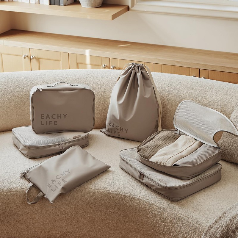 EACHY 6 Set Compression Packing Cubes for Travel & Carry-On, Space-Saving Luggage Organizers & Compression Bags for Clothes & Shoes, Ideal for Vacation & Cruise Essentials