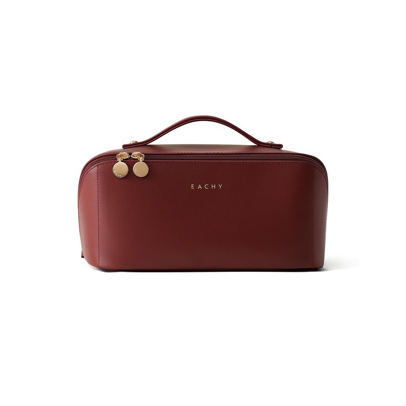 EACHY Travel Makeup Bag,Large Capacity Cosmetic Bags for Women,Waterproof Portable Pouch Open Flat Toiletry Bag Make up Organizer with Divider and Handle, AO-Red, Large
