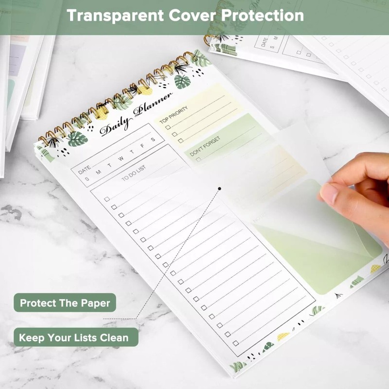 - Premium materials: This task planner features a clear PP cover that protects the interior pages from dust and wear. The back cover is made of sturdy cardboard, providing stability for writing. Made from high-quality paper, our to-do list notepad ensures a smooth writing experience without ink bleeding