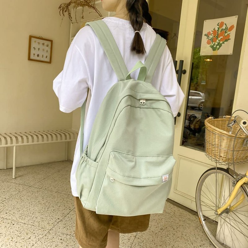 Eagerrich Aesthetic Backpack Cute Backpack School Supplies Laptop Bag for Teens Girls Women Students Solid Color