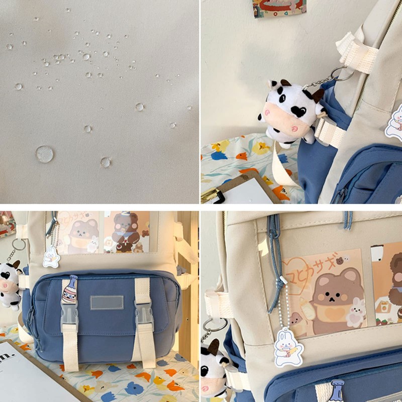 - MATERIAL:Nylon and PVC fabrics with smooth metal zippers are super light but strong.The entire fabric is coated and wear-resistant. Even if it gets wet from the rain, it can prevent water from penetrating into the bag. Durable and breathable,with cute accessories,both functional and aesthetic design is a well-deserved choice for girls' backpacks.